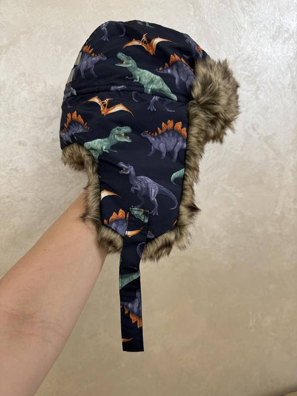 УВАГА! Безпечними, Шафа-,ОЛХ-доставками не відправляю - прошу не оформлювати замовлення - всі запитання пишіть, будь-ласка, у повідомлення. Детская теплая шапка с закрытыми ушками-можно застегивать, или подвернуть, если не сильно холодно. Универсальный пошив и цвет - подойдет и мальчику, и девочке-любителям динозавров. Внутри полностью на термоизоляционном меху/флиссе. Размер 134-152- можно и на меньше. По мне мнение - маломерит. Из немецкого магазина Н&М. Новая, со всеми бирками и этикетками. торгу нет, стоимость окончательна. Отправка "Новой Почтой" за счет заказчика. Отправки "Новой Поштой" с послеоплатой при минимальной подписке 200 грн.