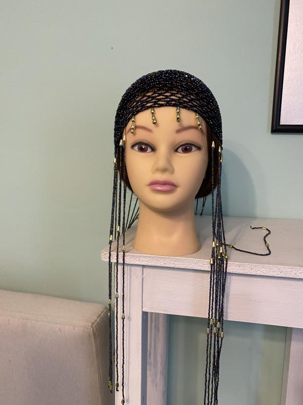 Ажурная шапочка плетеная крючком вся украшена бисером и имеет длинную бахрому из бисера до 40 см. Попросила продать подруга. В целом, состояние хорошее. Но я не знаю насколько крепко держится бахрома. Возможно ее надо будет дополнительно закрепить, это моя личная мысль. Может подойти для карнавального костюма. Если вам нужна вещь, то лучше заказывайте «безопасную оплату», чтобы могли сами рассмотреть.