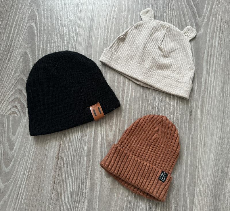 Шапки Бежевая НМ 74-80 размер. Легкая. На начало осени-весна. Состояние красивое. 60 грн. Черная немножко теплее. Где-то в год будет. 50 грн Терракотовая Next в год. 100 грн. Тепла, але не на зиму.