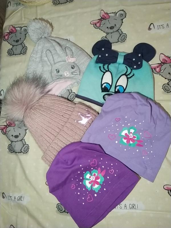 Шапки детские осень/зима/весна по 80 грн, комплект шапка + хомут на флисе ( размер 42-44, 6-9 месяцев) -120 грн