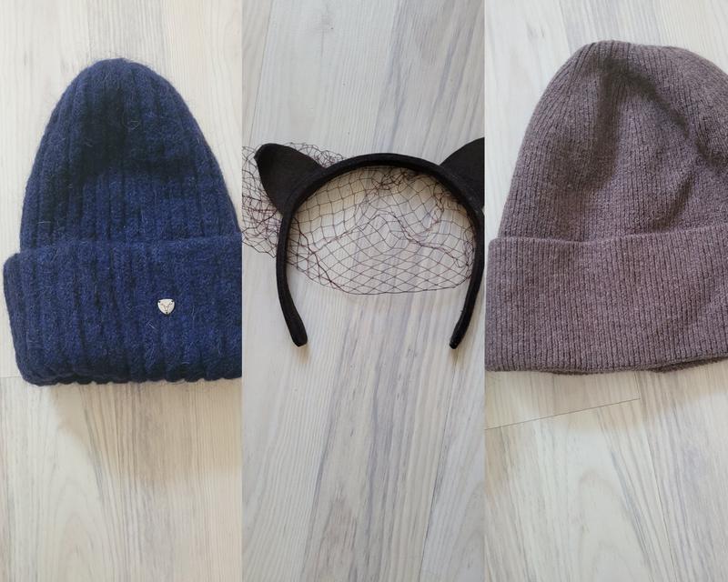 Продам 2 шапки + обруч на голову у подарунок Цена всего 450 грн 1) Синяя шапка, в составе шерсть, с флисовой подкладкой, теплая. Бренд LuckyLOOK. 2) Коричневая шапочка, тоже в составе с шерстью, но тоньше (носила теплой зимой и осенью). 3) Праздничный ободок, покупала в магазине Все свои. Новый, не понадобился, несколько лет лежать в шкафу.