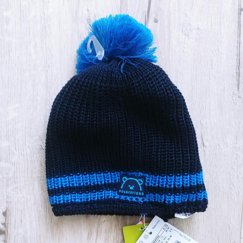 Вязанная шапка на флисе для мальчика 6-9месяц