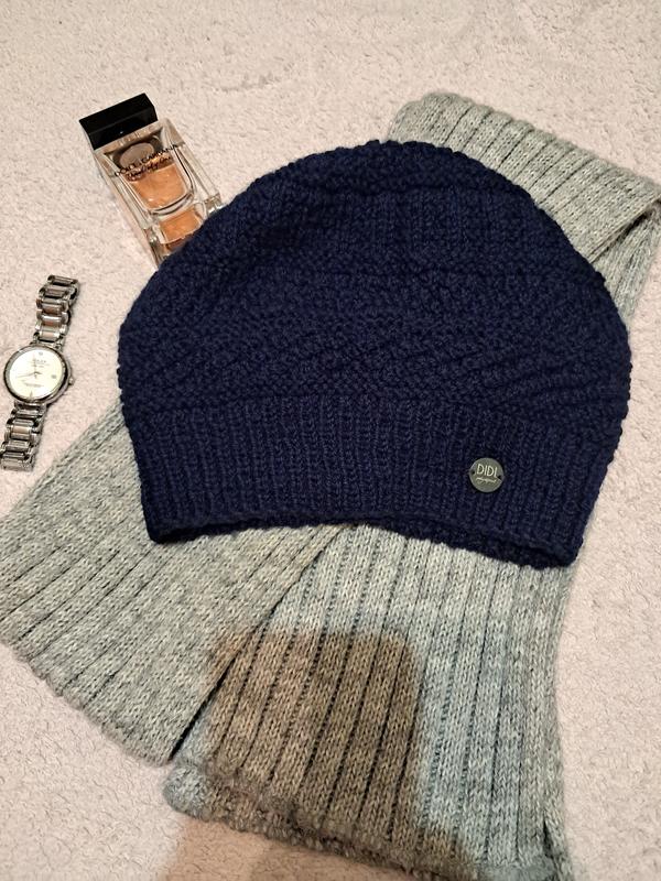 шапка ,як нова дефектов нет красиво тянется очень легкая и приятная на среднюю и большую голову темно синего цвета материал шерсть
