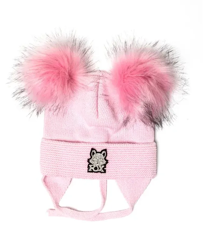 Шапка для девочки 46-48 см розовая шапка для девочки Детская шапка для девочки 46-48 см шапка для девочки утеплена флисом Шапка для девочки с украшением из фетра и двумя бубонами из искусственного меха.