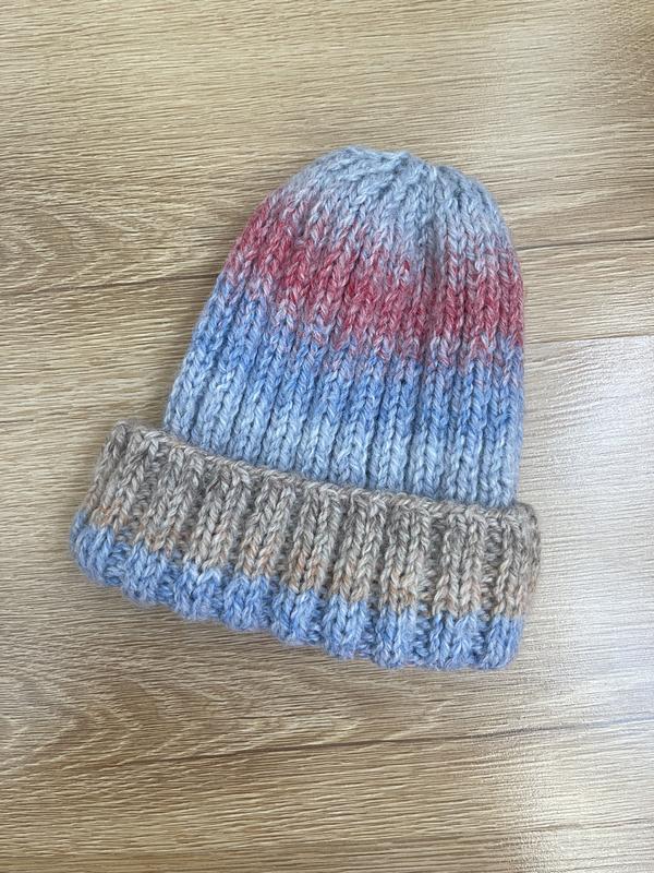 Легенька вʼязана шапка. В актуальных осенних цветах.