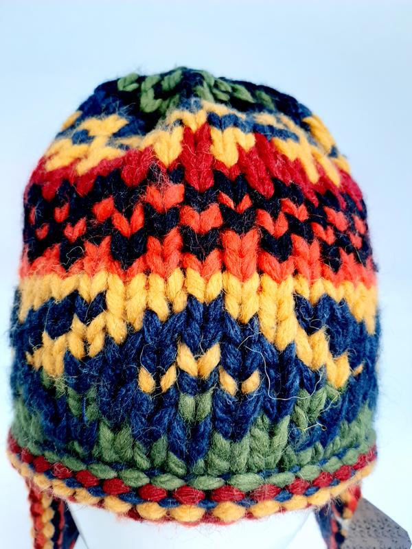 Вязаная шапка ушанка с скандинавским узором