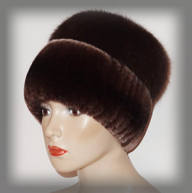 Меховая шапка из комбинированного меха rex rabbit и песца (коричневая)