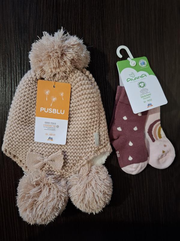 Вещи новые!Шапочка детская на объем 48-49.Внутри на махре.Нискочки размер 19-22.