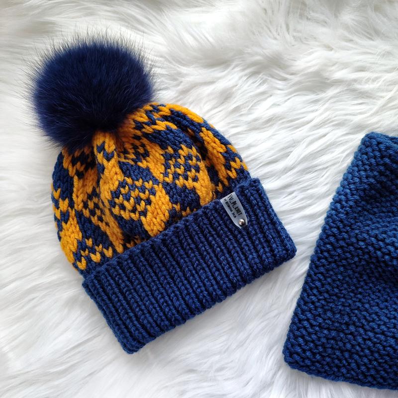 В'язаний комплект шапка та хомут Матеріал - напівшерсть Ручна робота Помпон - натуральний песець, можна підібрати будь-який Розмір - 50-52-54см Ціна шапочки - 500грн Ціна комплекту - 700грн