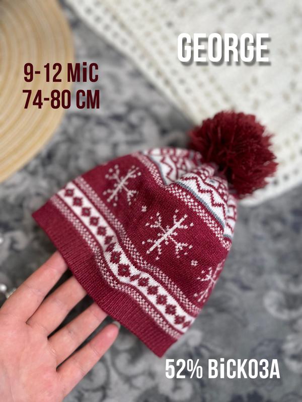 1+1=3 ♥️ классная шапка с помпоном george 9-12 74-80 бордо вискоза теплая