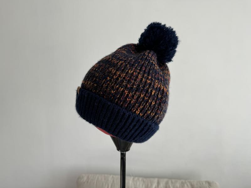 Предлагаю Вам качественную вязаную шапку с пумпоном и отворотом. Стан идеален, нюансов нет, красиво тянется. Полу обхват шапки в максимально растянутом состоянии 34 см