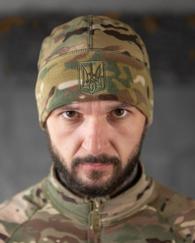 Шапка флисовая пиксель с вставкой soft-shell и липучкой под шеврон