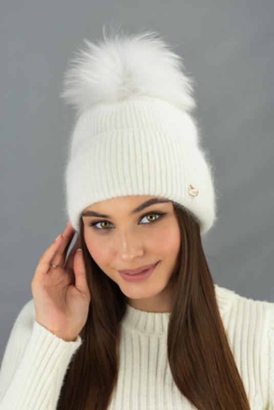 Женская зимняя шерстяная шапка с бубоном