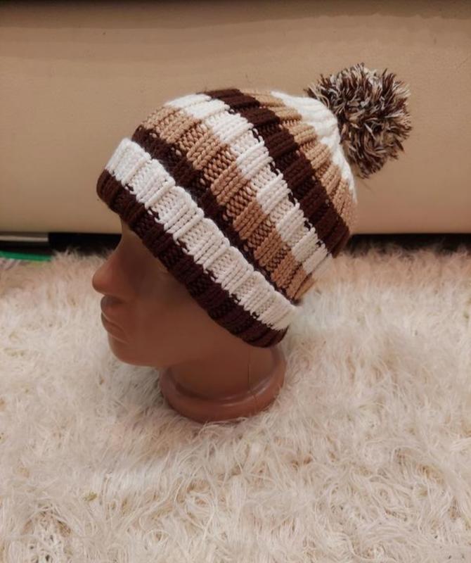 Вязаная шапка с бубоном в полоску