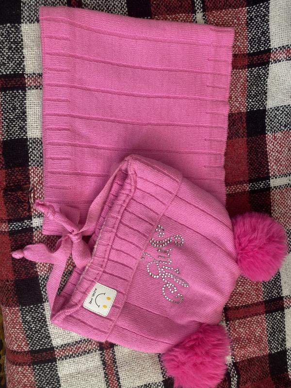 Шапка и хомут для девочки на зиму и прохладную осень. Размер 50-52, очень удобный и мягкий внутри утеплён флисом. Приятный, насыщенный розовый цвет. Стан 4/5.