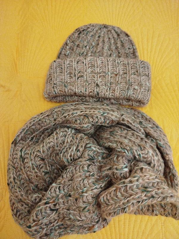 Комплект шапка и снуд, качественный состав:, акрил, лана, мохер, люрекс, грубая вязка. Снуд 32 см на 130.