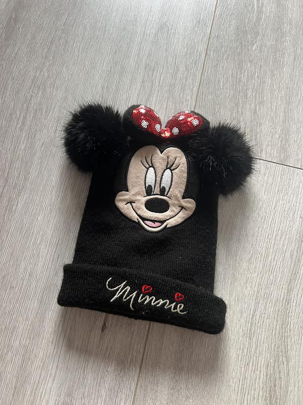 Шапка на девочку, черного цвета, теплая, микки маус, очень стильная, h&m, пишет 104, но я бы больше рекомендовала от 98 -104