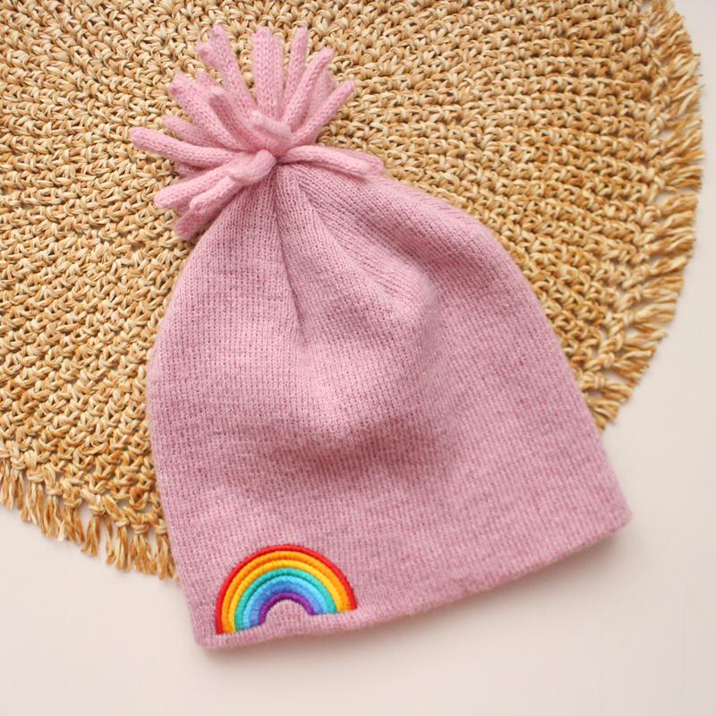 Розовая шапка двойной вязки с радугой george 1-3 года