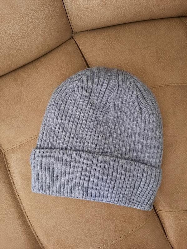 Шапка серого цвета в рубчик. Двойная, теплая на флисе. Хорошо тянется. Без дефектов, новая.