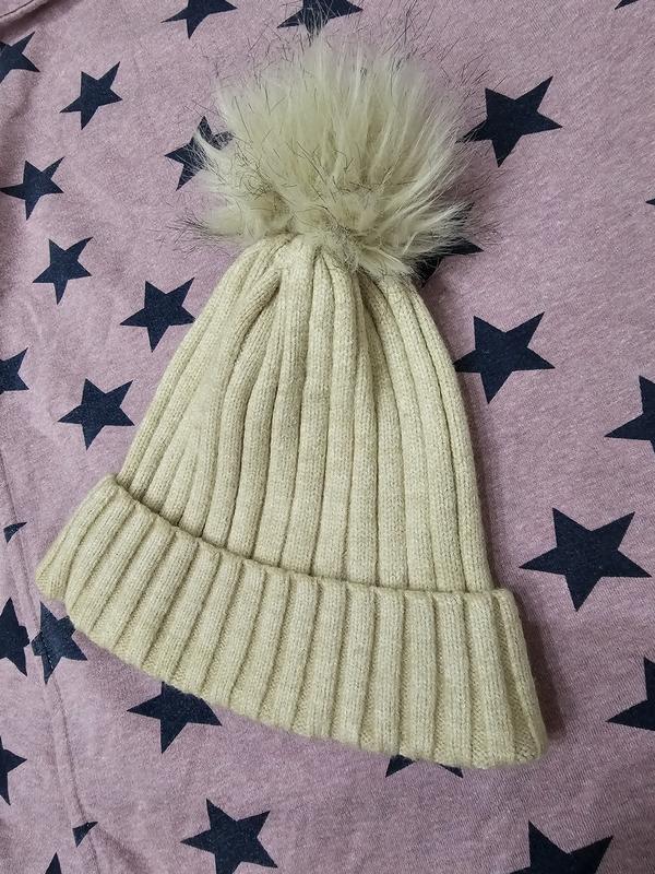 Зимняя вязаная шапка на девочку с помпоном Новая, но без Бирки Стан - идеальный НОГолови 22 см Тянется до 28 см
