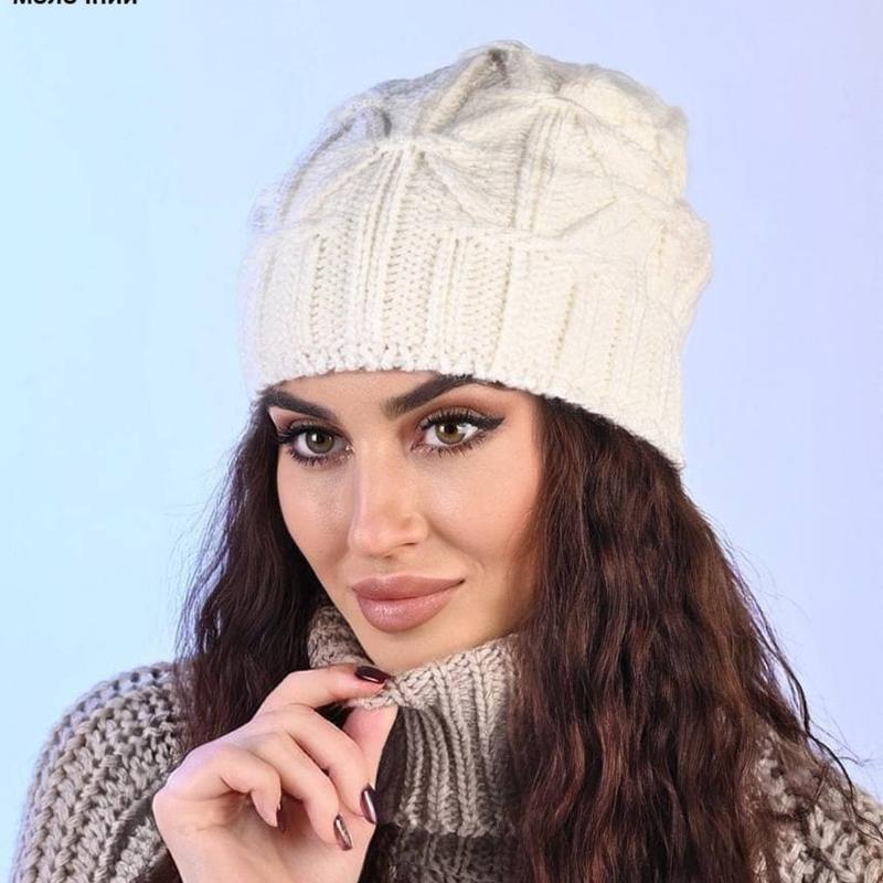 Шапка вязана На флісі Цвет молочный. Размер универсальный