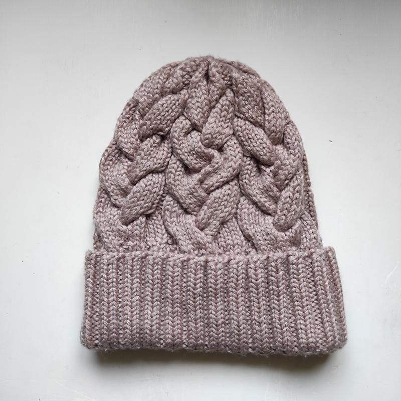 Шапка с косами из полушерсти ручной работы.. На обхват головы 52-54 см. Стан идеален.