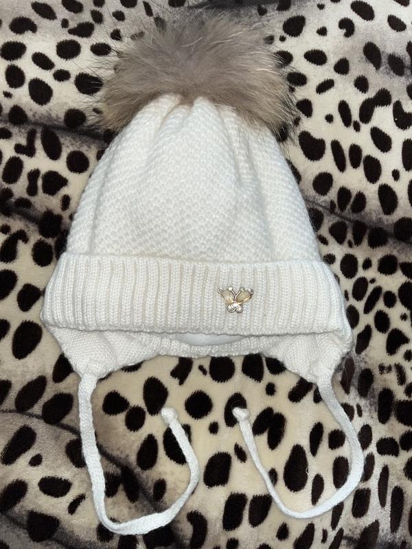 Шапка размер 48, для девочки. Стан идеален. Состав: 27% шерсть, 63% хлопок, 10% полиэстер. Подкладка 100% хлопок, бубен енот.