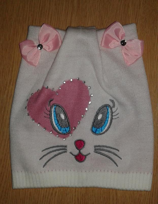 Вязаная шапочка котик с ушками размер универсальный 3-6 лет на объем головы 50 -54 см Сезон весна - осень однослойная Производитель - Польша Цвета: - белый с розовым