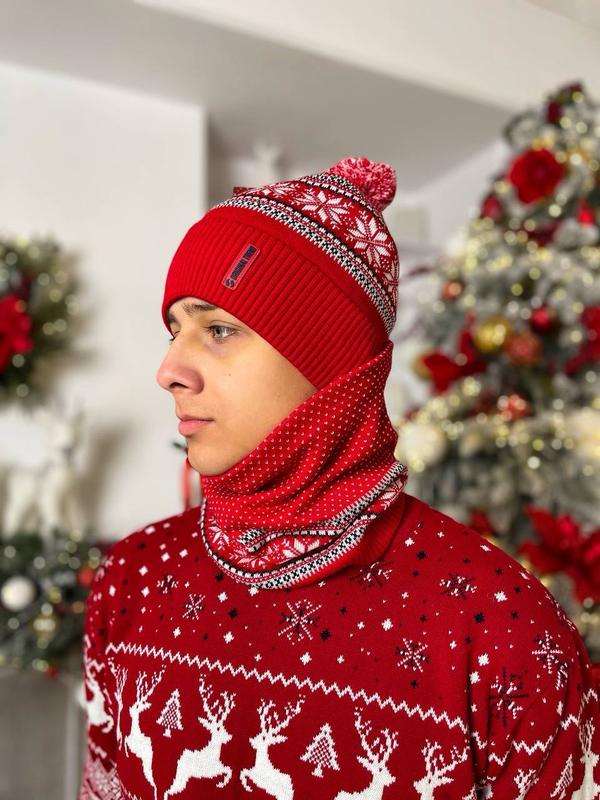 Комплект Шапка + бафф с узором💥 Подкладка на микрофлисе Состав: acrylic 100% Размер: универсальный (one size) Производитель: Украина Цвет: красный, бордо, синий Цена 750 грн