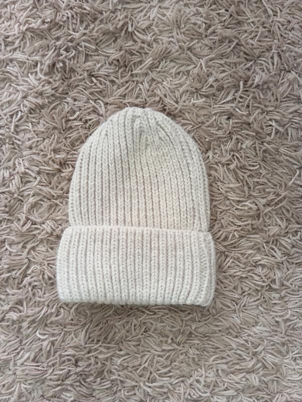 Теплая вязаная шапка Бежева Хорошо тянется, подойдет на любую окружность головы