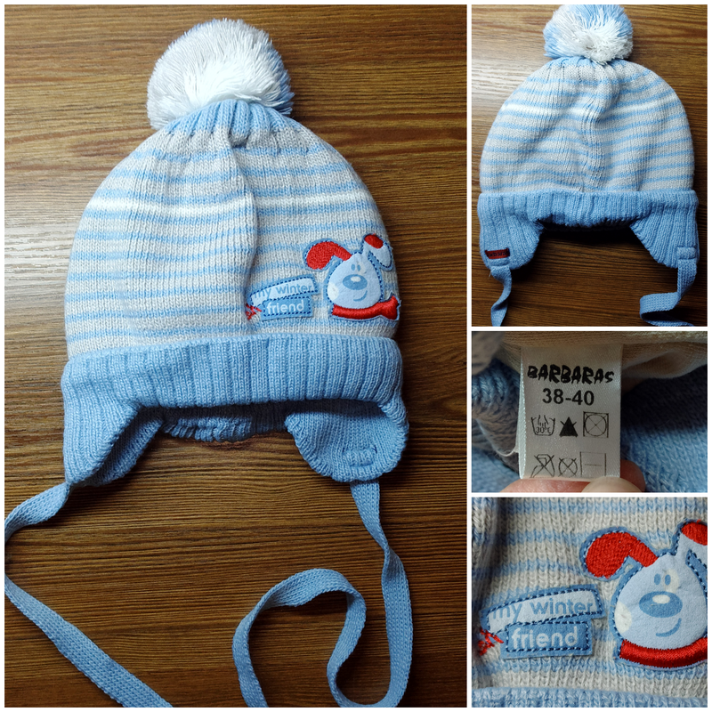 Утеплена, зимова шапочка на малюка. Виробник Польща. Об'єм 38-40 см Завні шерсть і акрил. Підкладка коттон. Утеплювач холофайбер. Без дефектів. Куплена майже за 300 грн.