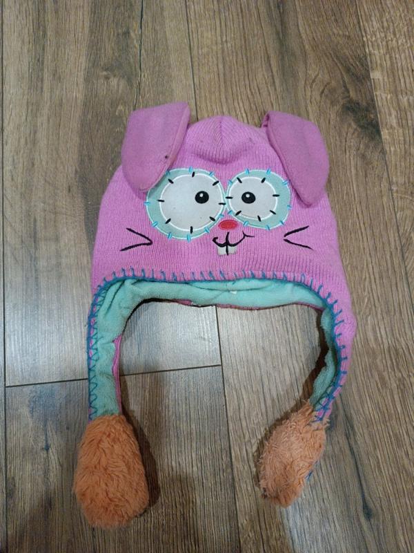 шапка зайка зайка розового цвета когда нажимаешь на шнурку ушки приподнимаются сзади есть хвостик очень милая шапка