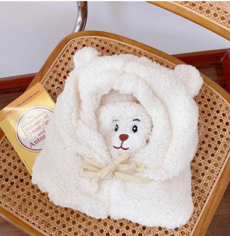 Теплая белая шапочка, подойдут как для детей, так и для взрослого. Уютная зимняя шапка с медвежью тематикой, со встроенной маской и шарфом. Такой аксессуар непременно создаст праздничную атмосферу