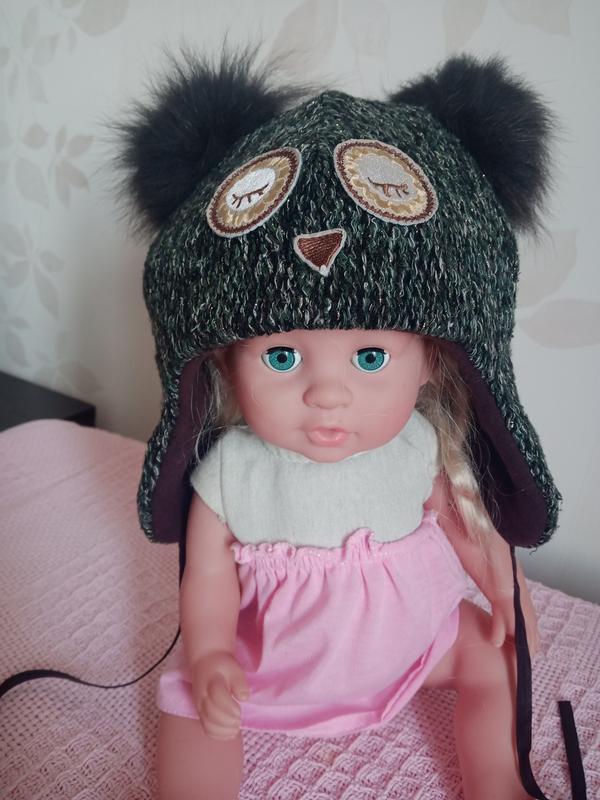 Зимняя шапочка для девочки на 3-4 рочки.Очень тепла. Подкладка легкий фетр. Состав находится на фото.Очень красиво и полотно прилегает к личику ребенка. Очень удобная. Балабины натуральный мех. Стан идеален. Цвет такой как на фото.