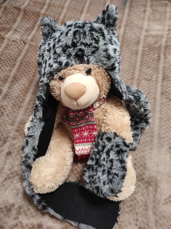 Теплая зимняя шапка шарф 3 в 1 с ушками, шапочка с ушами, леопард, лео, оригинал