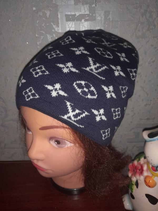 Двойная вязаная шапочка, тёмно синего цвета. Состояние новое, без бирки.