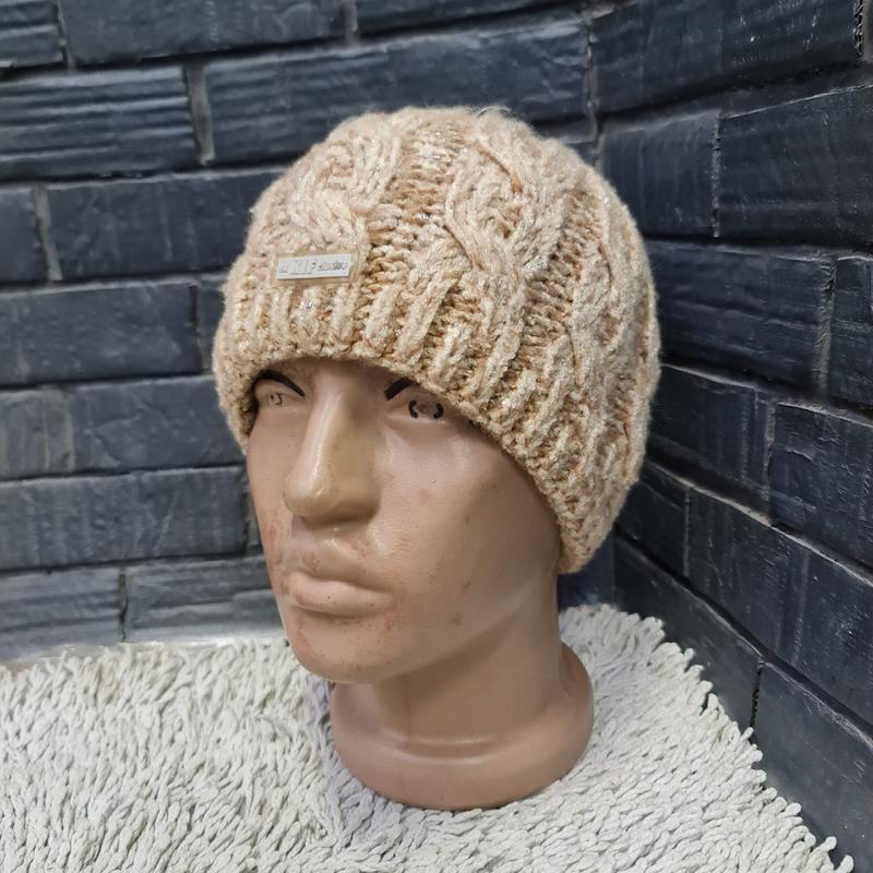 Зимняя вязаная женская бежевая шапка kif сос. 50% шерсть 50% акрил 29334