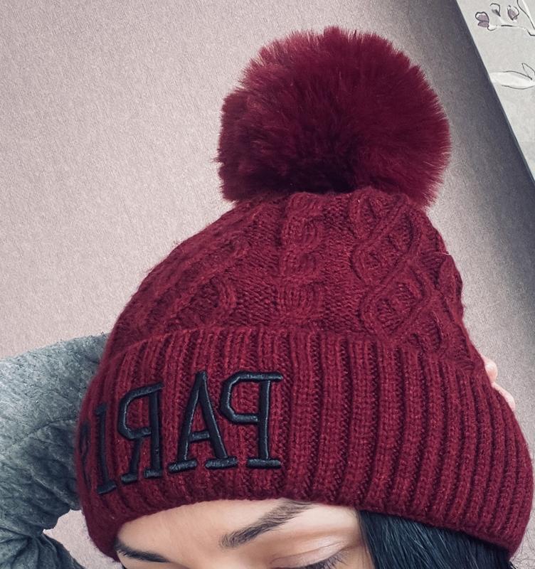 Состояние как новое Цвет марсала Бордо Шапочка из натуральной нити поэтому будет греть но не запаривать голову И не будет электризуться Надпись Paris идет вышитая черной нитью Поопон супер мягкий из эко меха