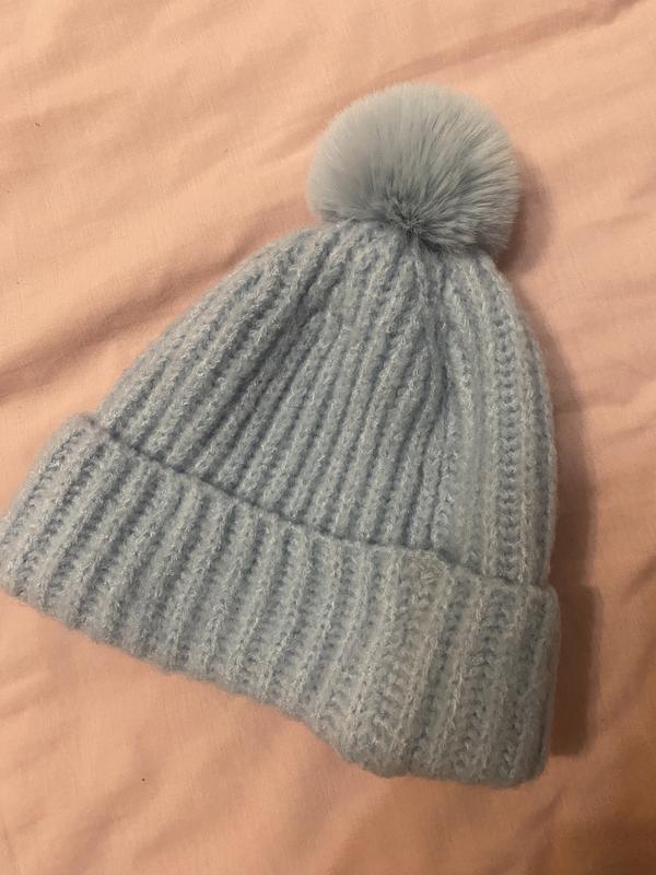 Голубая зимняя шапка с бубоном reserved вязаная новогодняя снеговичка
