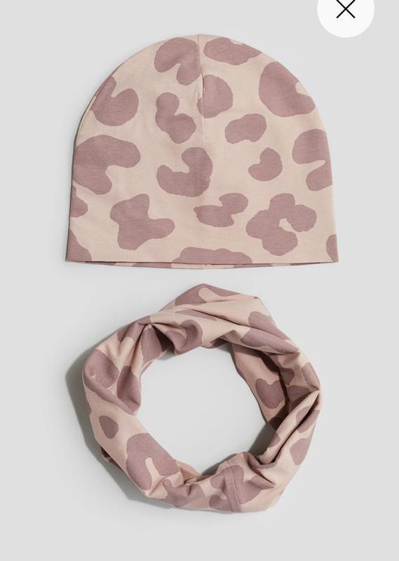 Набір- шапка-біні та снуд (шарф-труба) Колір рожевий в леопардовий принт 📐Розмір-1,5-6р. Cotton 95%, Elastane 5%