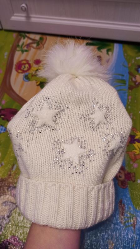 Шапочка с бубоном, со звездочками в стразы на 5-8 лет