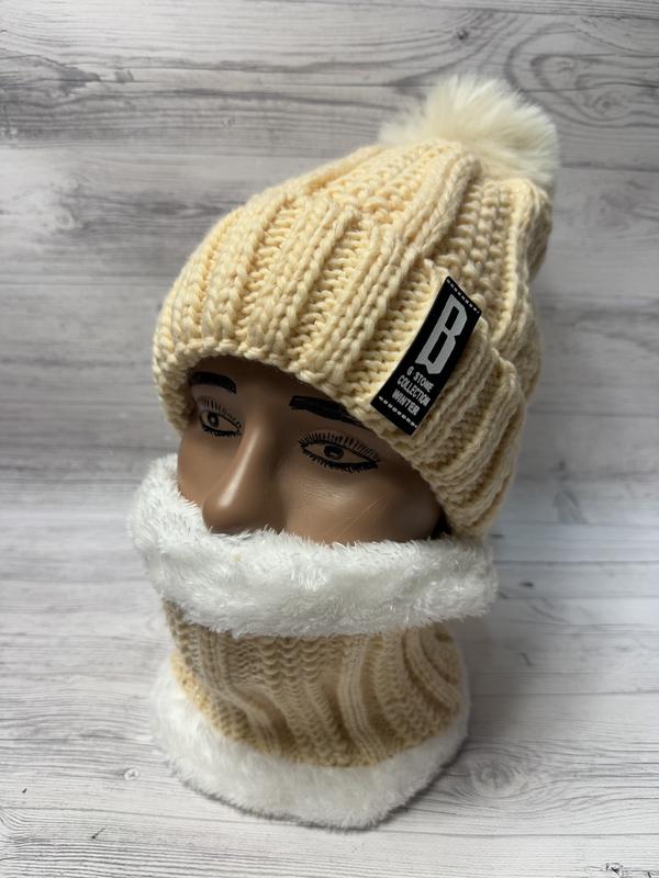 Женская шапка и повязка с защитой лица и шеи персиковый цвет