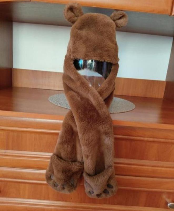 Детская шапка из искусственного меха коричневого цвета с длинными ушами-лапами.В карманчиках можно греть ручки или использовать уши как шарф. Подкладка- качественный флис. Обхват- 50; высота спереди- 16.5,сзди-21 Возраст 3-4 года; известного британского детского бренда Lily &Dan Без следов носки.