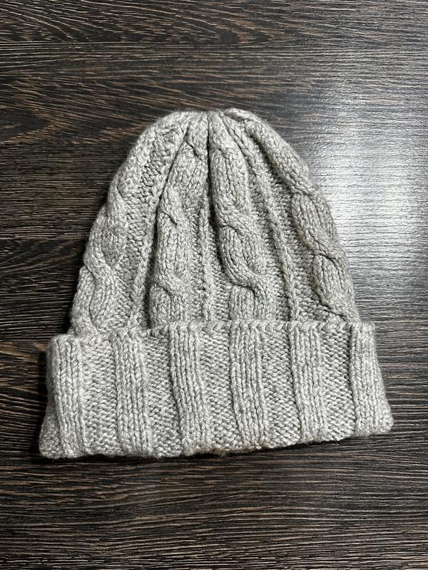 Вʼязана тепла шапка в сірому кольорі.