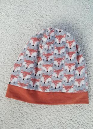 состояние хорошее, из дефектов есть зашитость по шву. на 3-5роков. полу обхват головы 23см, высота 20см 95% бавовна , 5% еластану Волшебная двусторонняя шапочка с мотивом лисы от ALANA идеально защищает голову ребенка от неприятного ветра в переходной период. Благодаря практичной двусторонней опции шляпа можно сочетать с разнообразной одеждой и заменять на серый или оранжевый цвет по желанию. Приятное содержание органического хлопка делает эластичную шапку необычайно мягкой и гибкой - для комфортной посадки.