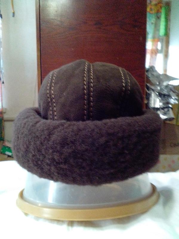 Состояние новой. Цвет, как на фото 1.На последнем фото яектора показать, как выглядит мех, но на свету доказывает, и цвет совсем другой. В середине шапки также натуральная овчина.Сказать, что она теплая, это ничего не сказать. Она теплища. Объем по окружности - 56- 57 см. Это условно, так как есть регулятор объема.