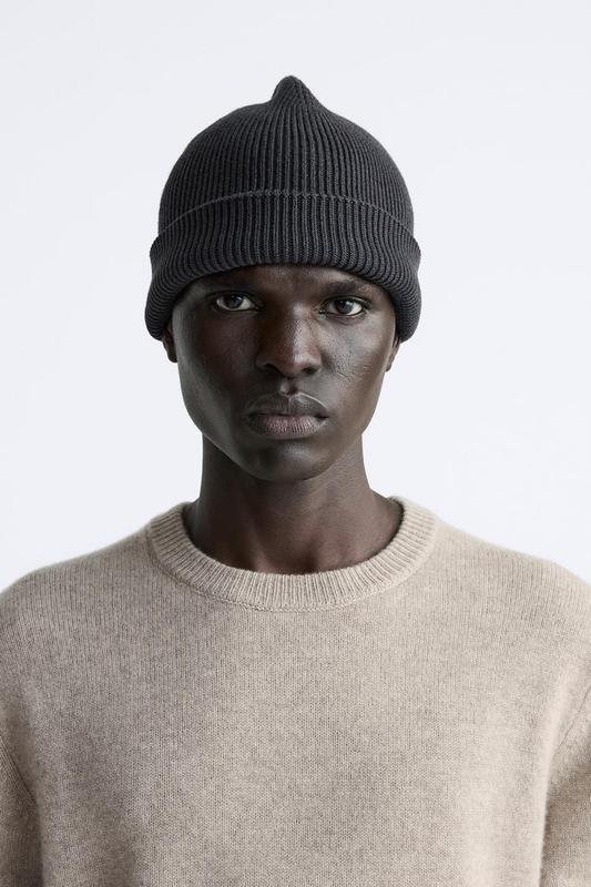 Цвет: Антрацитовый серый Трикотажна шапка в рубчик