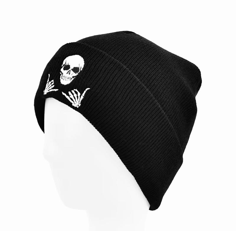 Шапка логотип череп (жест шака) с подворотом черный, унисекс wuke one size