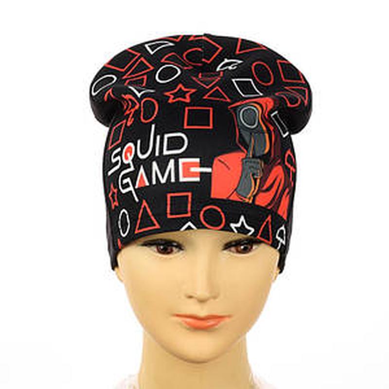 Тонкая трикотажная шапочка для мальчика 5-7 лет с популярным принтом на.передней стороне. Потилична сторона шапки - однотонна. Размер 52-54, хорошо тянется. Имеет удлиненную форму "чулок", благодаря чему надежно защищает уши ребенка от ветра