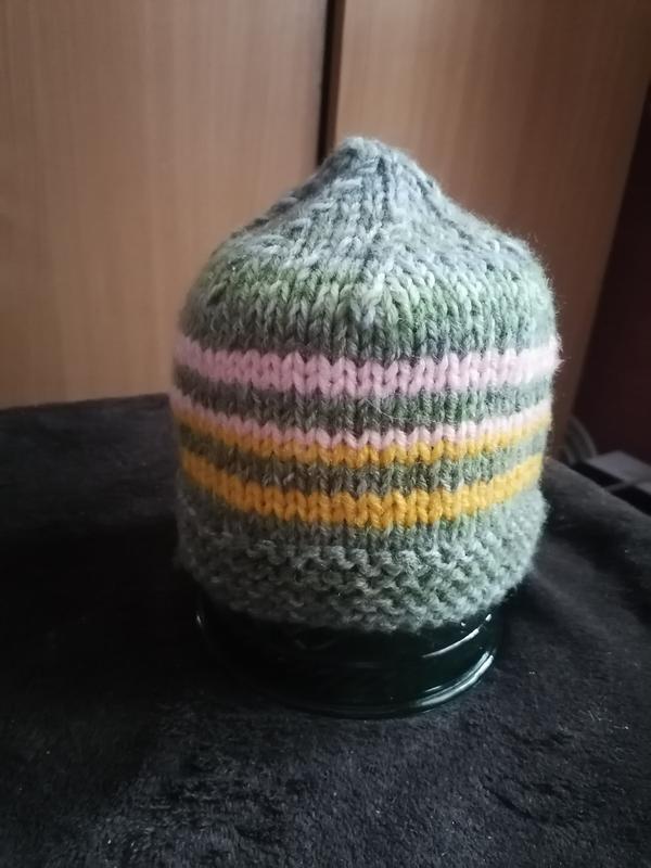 Детская вязаная шапка. 1-2 года. Обхват 46 см., висота 17 см. Матерiал акрил.